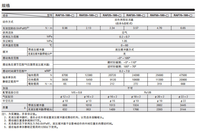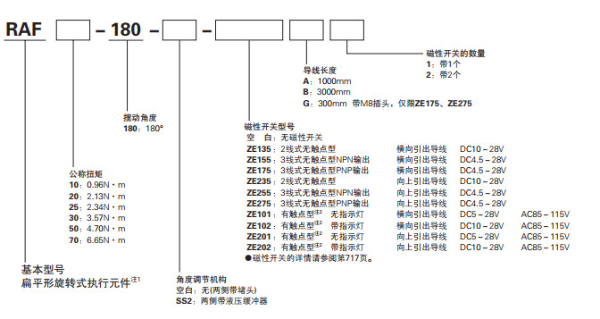 RAF10-180,RAF20-180,RAF25-180,RAF30-180,RAF50-180,RAF70-180,旋转式执行元件