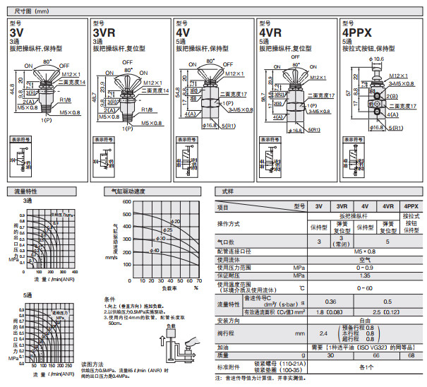 3V,3VR,4V,4VR,4PPX,TAC手动阀--操纵杆式阀