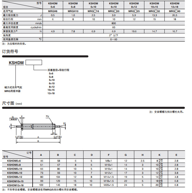 KSHDM5*6,KSHDM5*8,KSHDM5*10,KSHDM6*10,KSHDM8*12,KSHDM10*15,KSHDM12*18,专用缓冲器