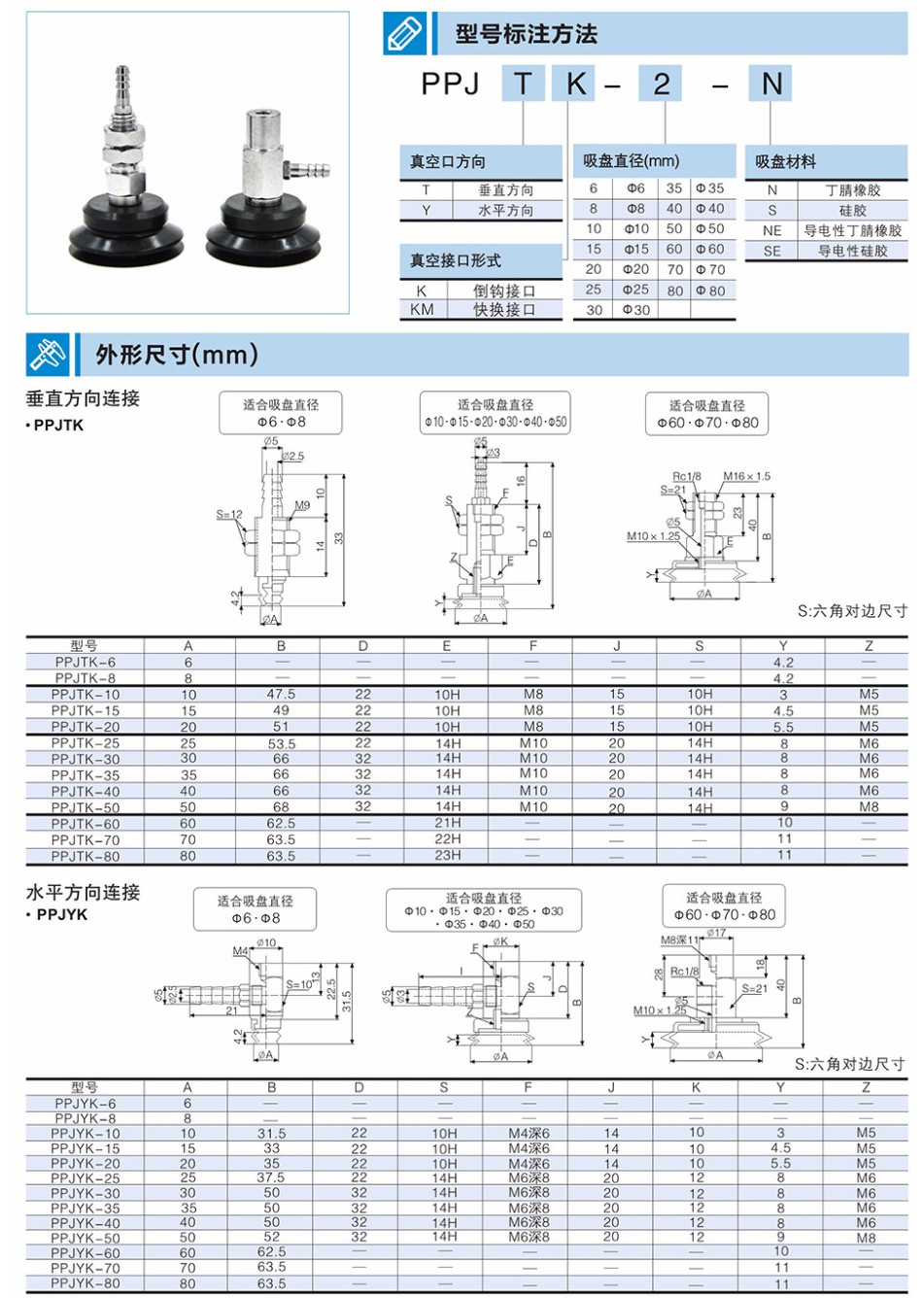 PPJTK-6,PPJTK-8,PPJTK-10,PPJTK-15,PPJTK-20,PPJTK-25,薄型双层垂直/水平真空口无缓冲吸盘组