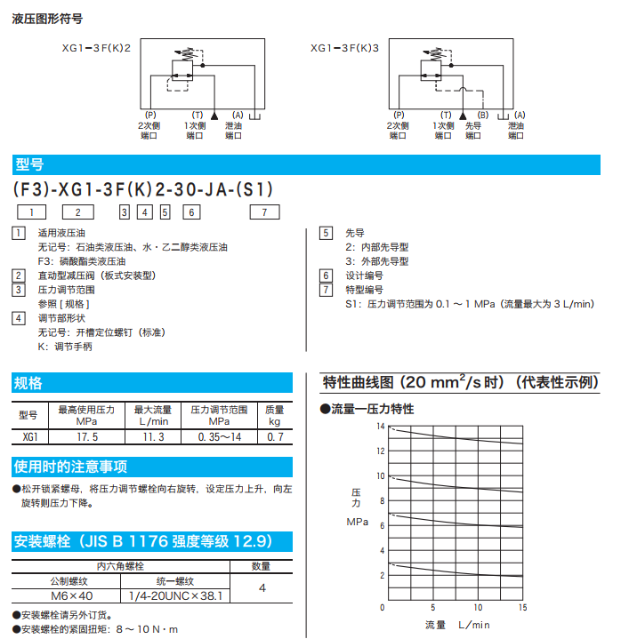 XG1-3F2-30-JA,XG1-3FK2-30-JA,XG1-3F3-30-JA,XG1-3FK3-30-JA,XG1直动型减压阀(板式安装型)
