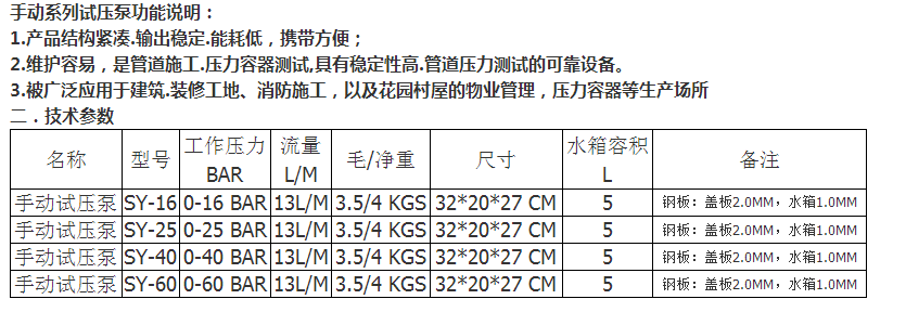 SY-16,SY-25,SY-40,SY-60,手动测压泵25kg至60kg全铜泵体铜活塞持久更耐用