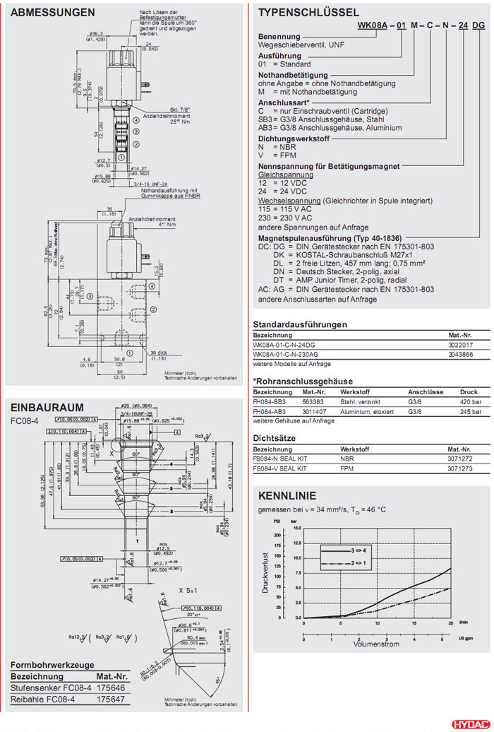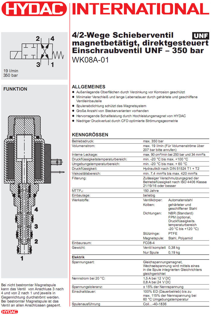 WK08A-01-C-N-24DG,WK08A-01-C-N-230AG,HYDAC电磁4/2方向滑阀