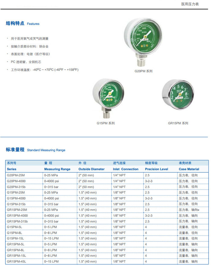 G20PM-25M,G15PM-25M,GR15PM-25M,G15PM-5L,GR15PM-45L,G15PM-315b,GR15PM-15L,医用压力表