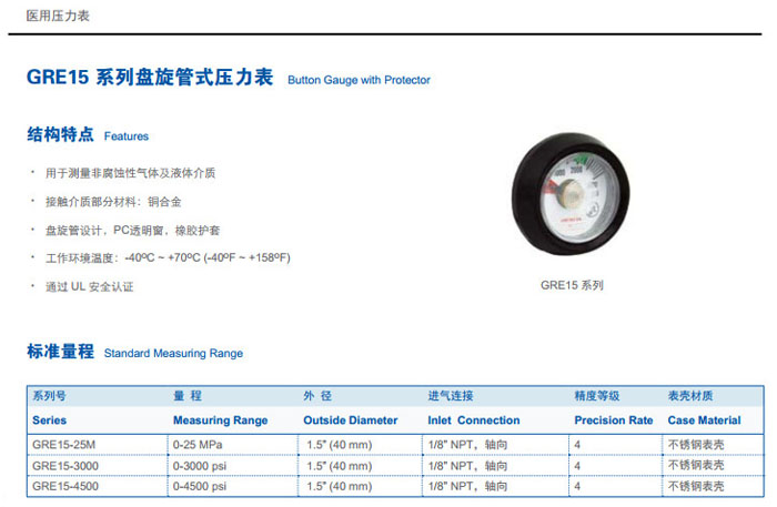 GRE15-25M,GRE15-3000,GRE15-4500,盘旋管式压力表