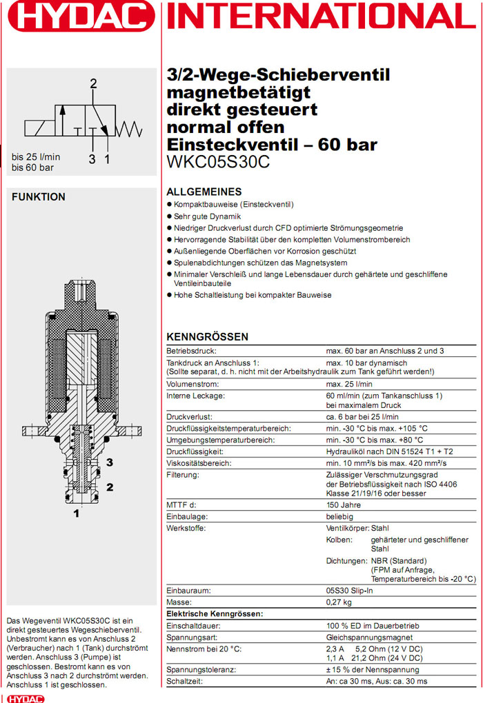 WKC05S30C-01-C-N-12DU,WKC05S30C-01-C-N-24DU,WKC05S30C-01-C-N-12DN,WKC05S30C-01-C-N-24DN,HYDAC二位三通方向滑