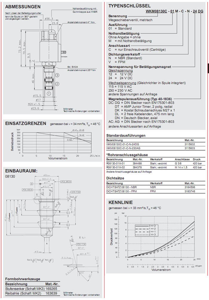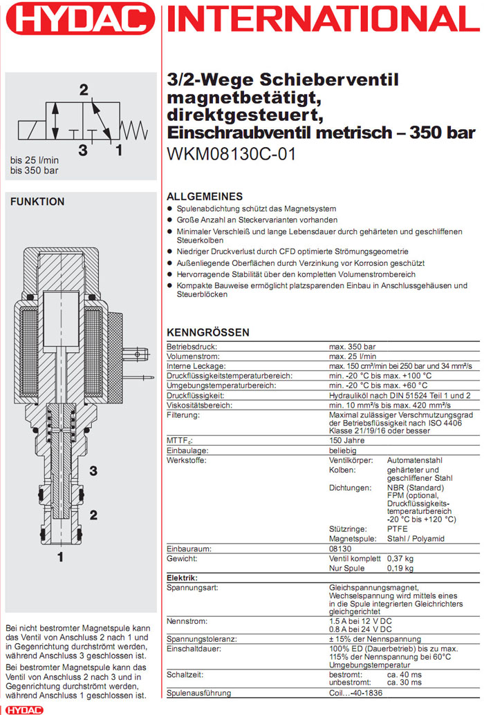 WKM08130C-01-C-N-24DG,WKM08130C-01-C-N-230AG,HYDAC二位三通方向滑阀