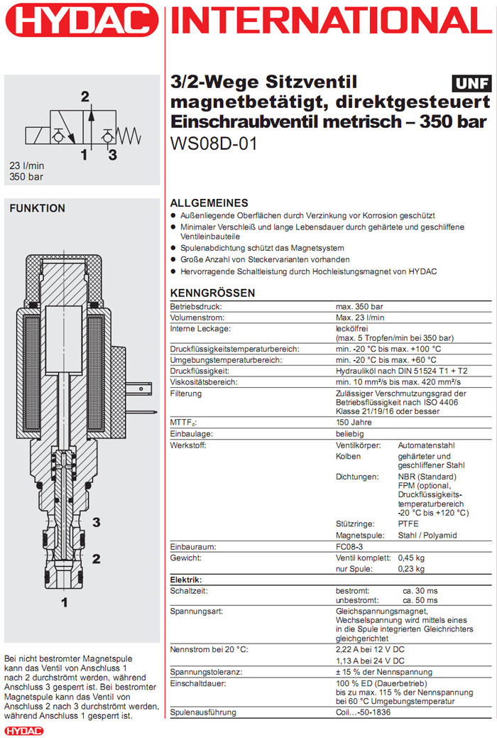 WS08D-01-C-N-12DG,WS08D-01-C-N-24DG,WS08D-01-C-N-230AG,HYDAC二位三通方向提升阀