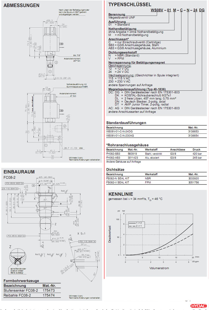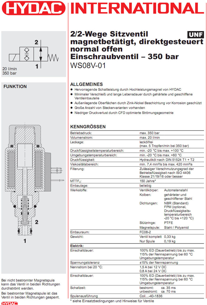 WS08V-01-C-N-24DG,WS08V-01-C-N-230AG,HYDAC电磁2/2方向座阀