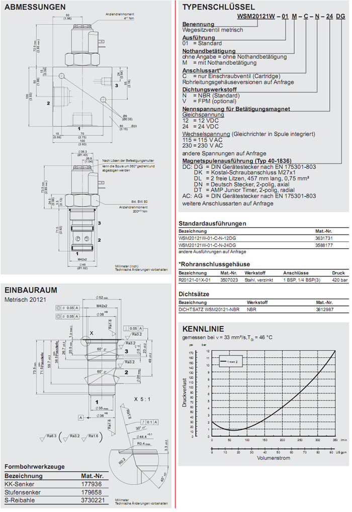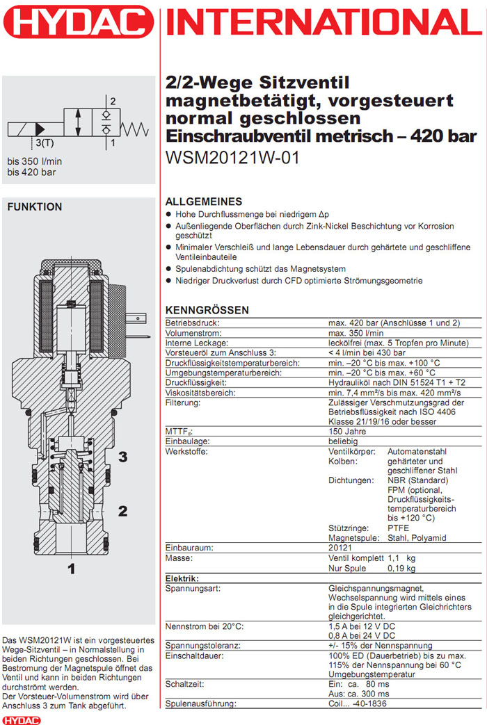 WSM20121W-01-C-N-12DG,WSM20121W-01-C-N-24DG,HYDAC电磁2/2方向座阀