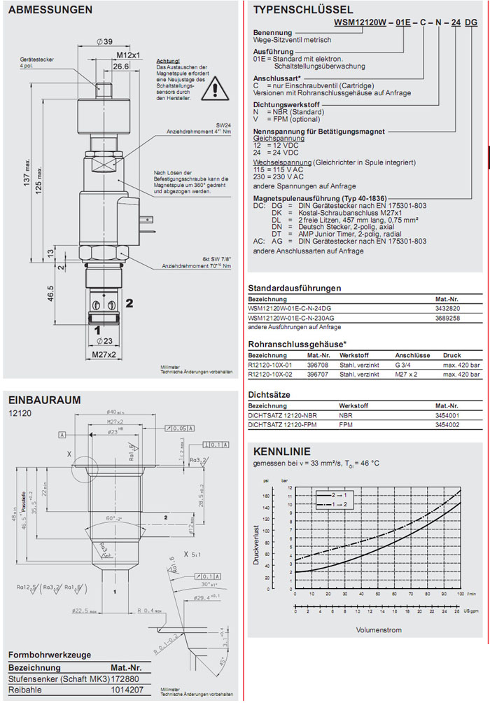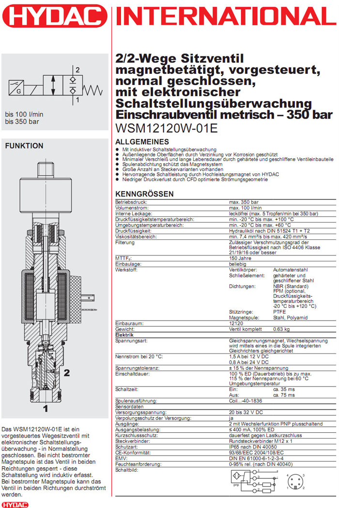 WSM12120W-01E-C-N-24DG,WSM12120W-01E-C-N-230AG,HYDAC电磁2/2方向座阀