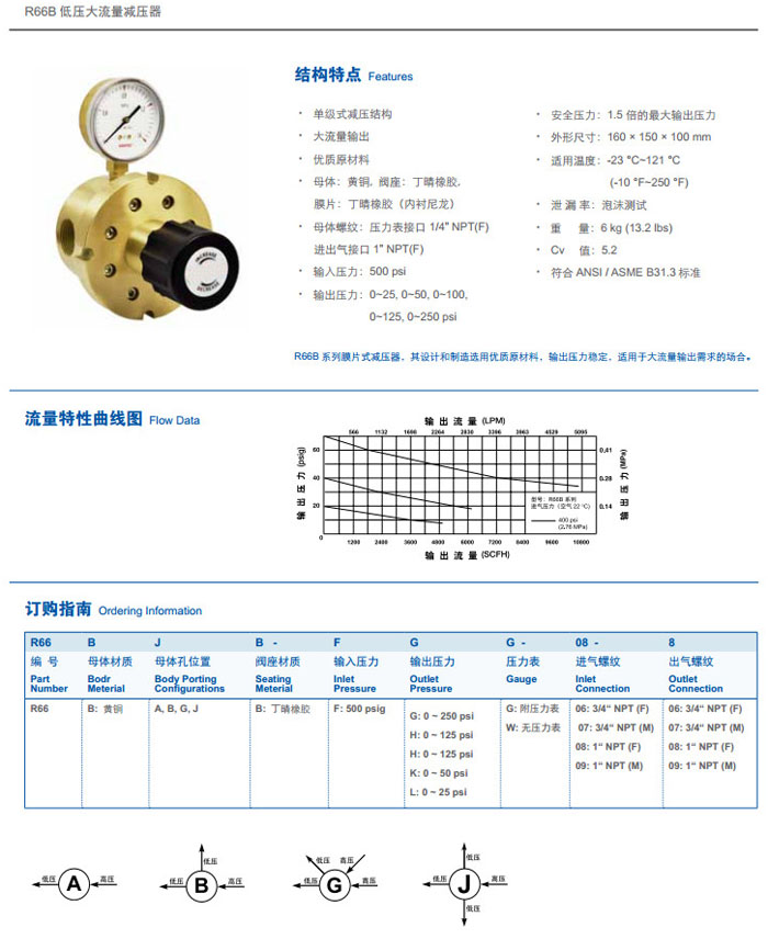 R66BAB-FGG-06-06,R66BBB-FGG-06-06,R66BGB-FGG-06-06,R66BJB-FGG-06-06,低压大流量减压器