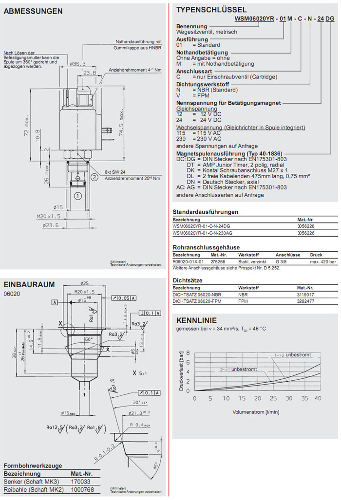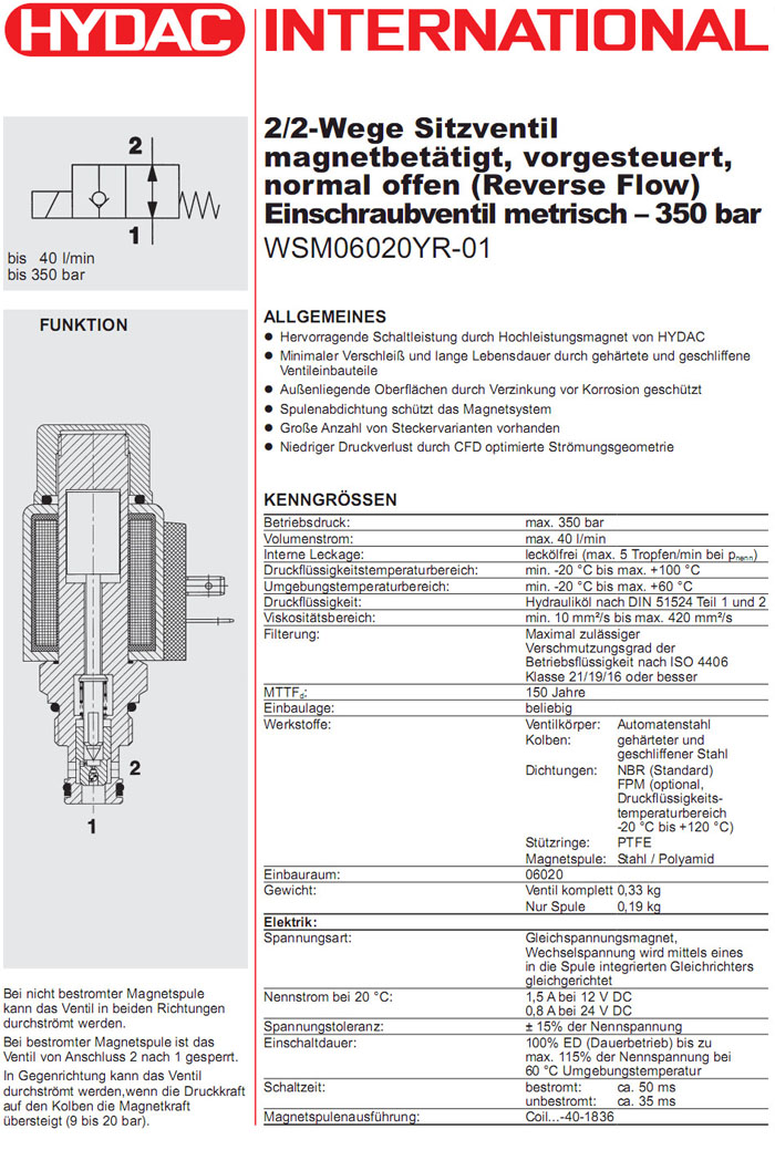 WSM06020YR-01-C-N-24DG,WSM06020YR-01-C-N-230AG,HYDAC电磁2/2方向座阀