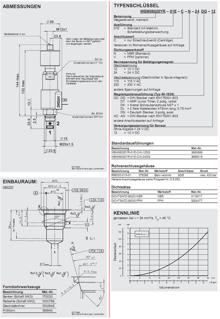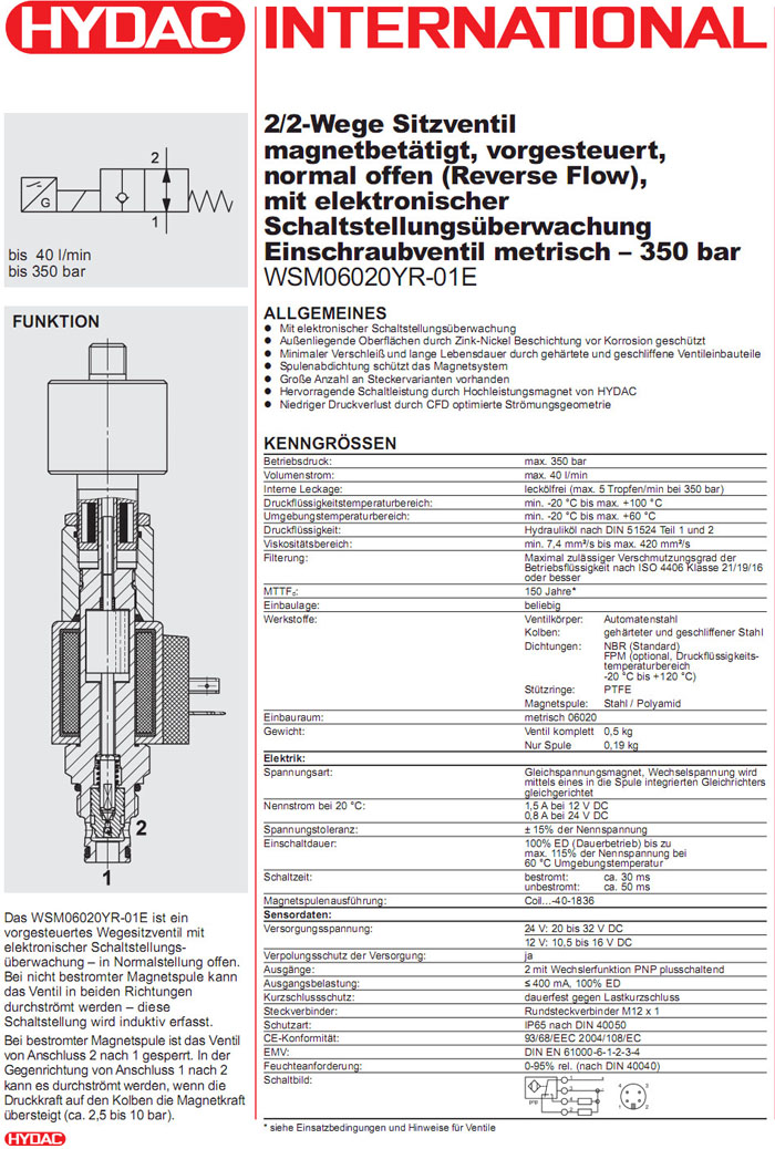 WSM06020YR-01E-C-N-12DG,WSM06020YR-01E-C-N-24DG,HYDAC电磁2/2方向座阀
