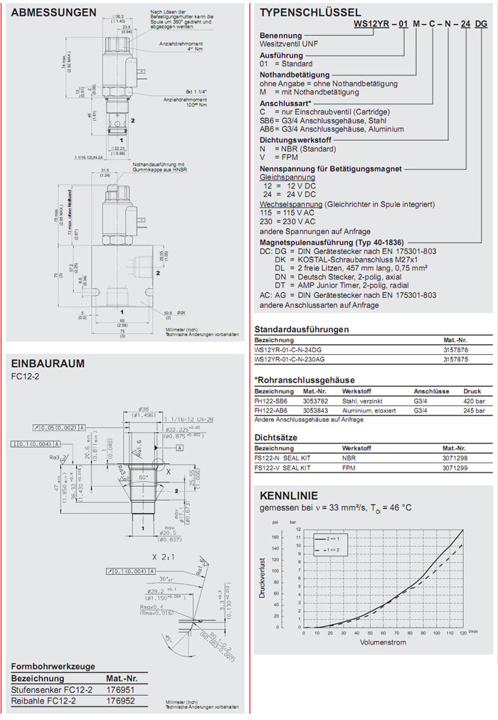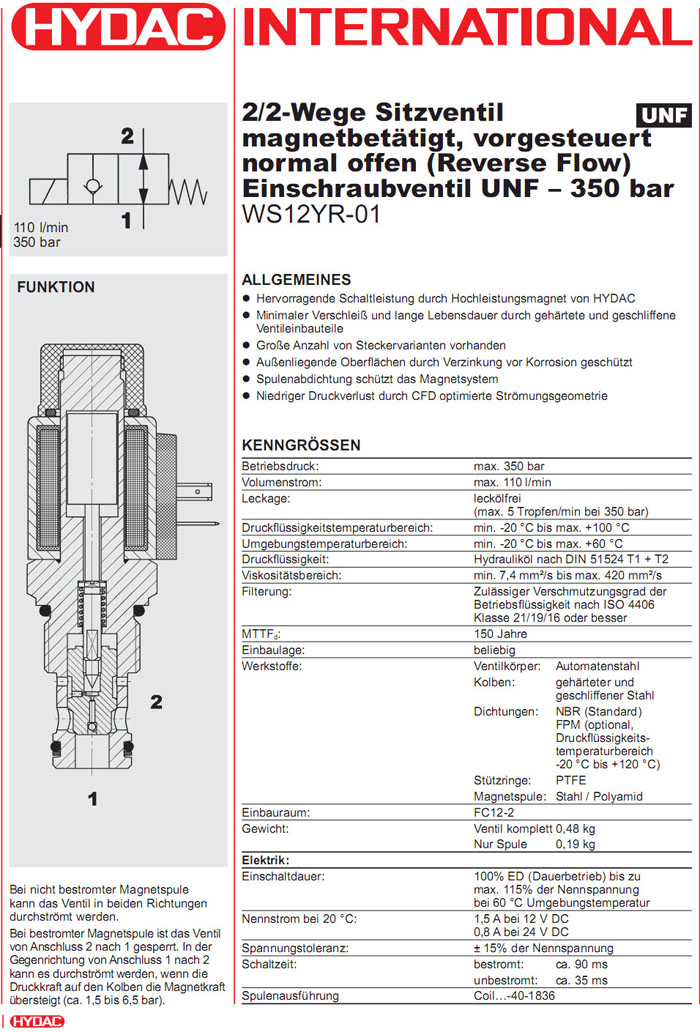 WS12YR-01-C-N-24DG,WS12YR-01-C-N-230AG,HYDAC电磁2/2方向座阀