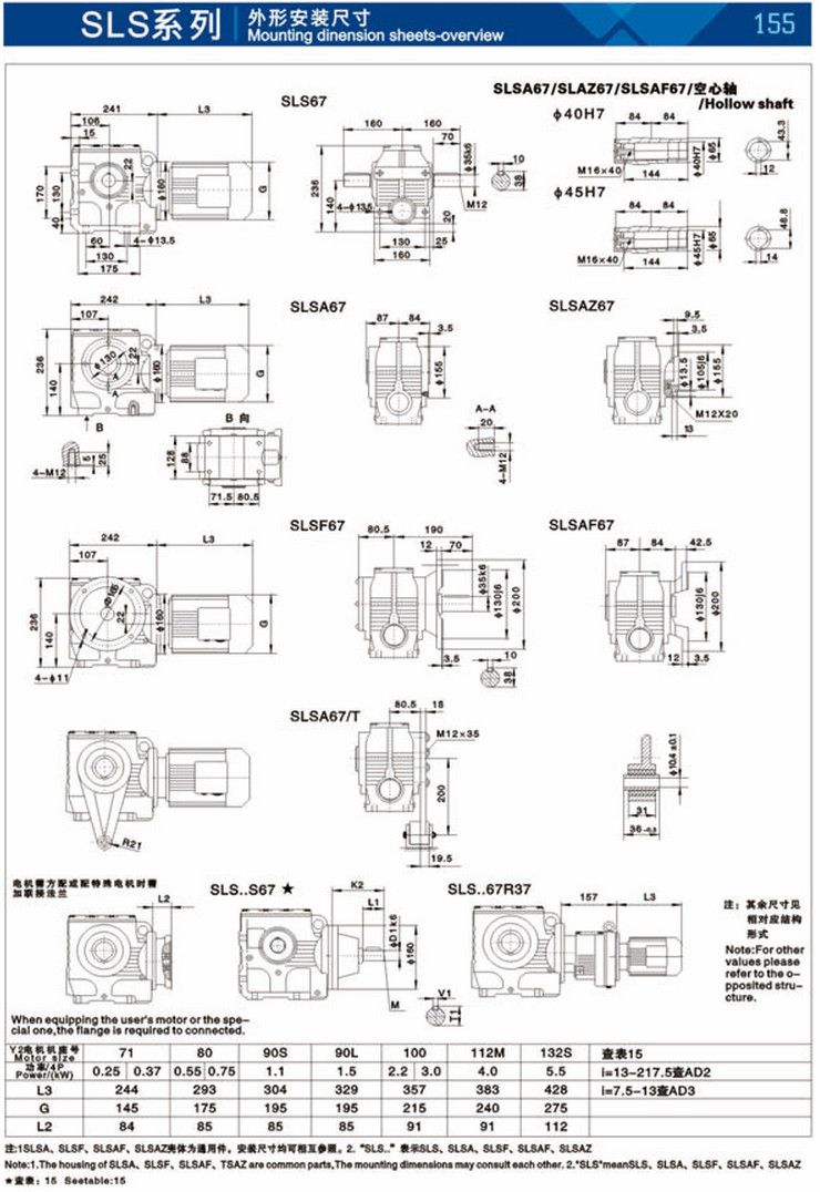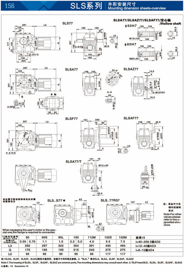 SLSF37,SLSA47,SLS47,SLSF57,SLS67,SLSA77,SLSA87,SLSF97,斜齿轮蜗杆减速机