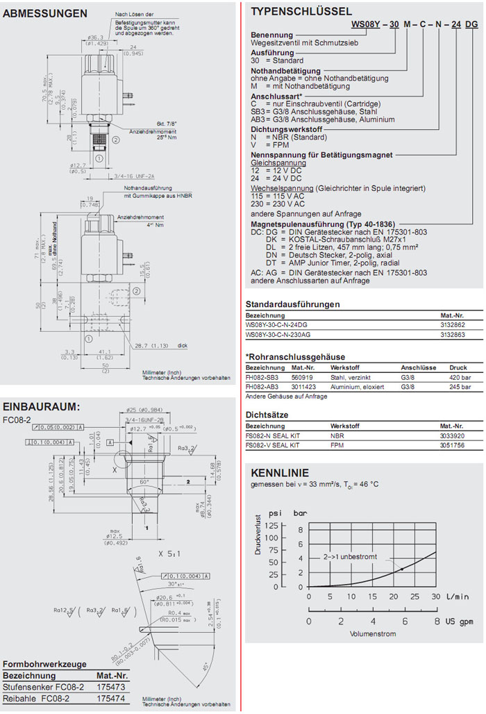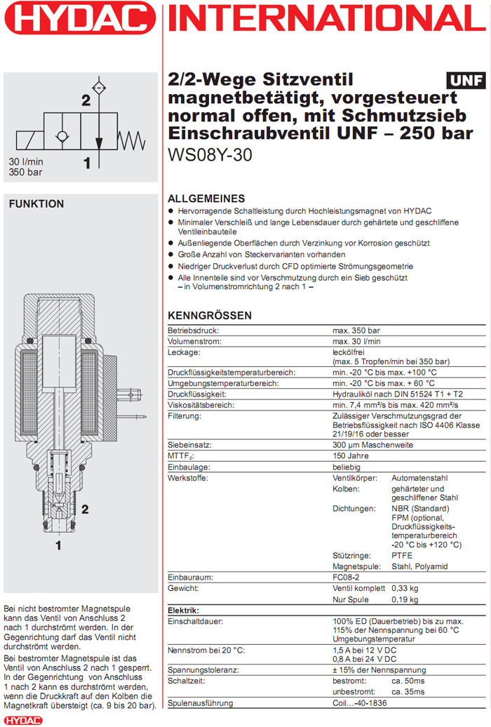 WS08Y-30-C-N-24DG,WS08Y-30-C-N-230AG,HYDAC电磁2/2方向座阀