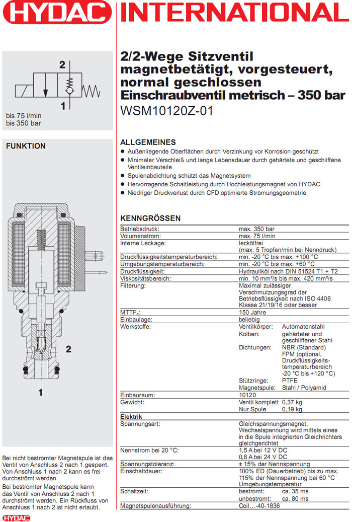WSM10120Z-01-C-N-24DG,WSM10120Z-01-C-N-230AG,HYDAC电磁2/2方向座阀