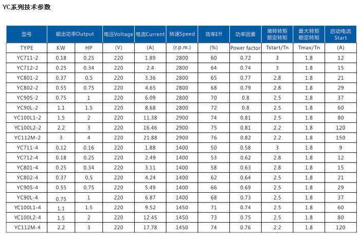 YC711-2,YC712-2,YC801-2,YC802-2,YC100L1-2,YC100L2-2,YC112M-2,
