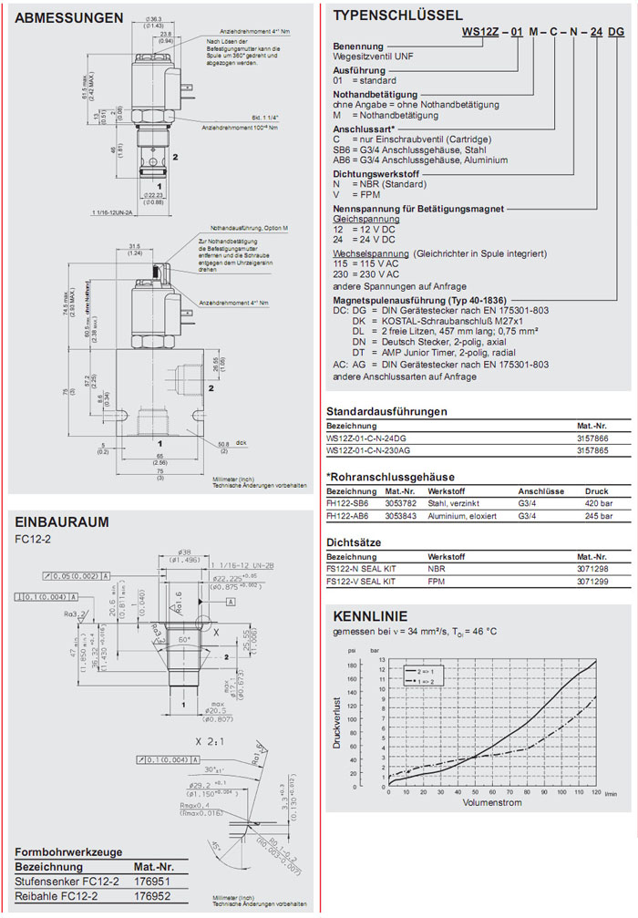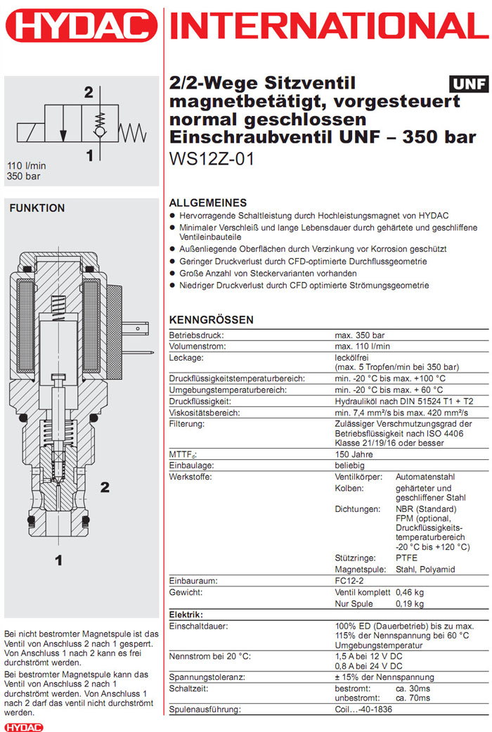 WS12Z-01-C-N-24DG,WS12Z-01-C-N-230AG,HYDAC电磁2/2方向座阀