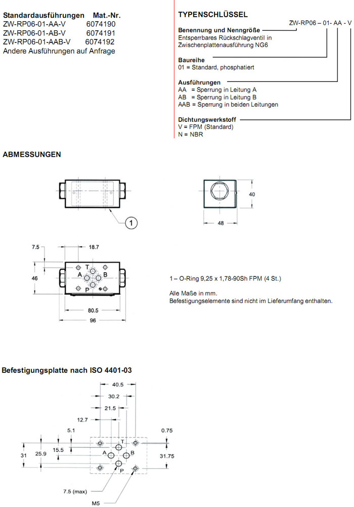 ZW-RP06-01-AA-V,ZW-RP06-01-AB-V,ZW-RP06-01-AAB-V,HYDAC止回阀