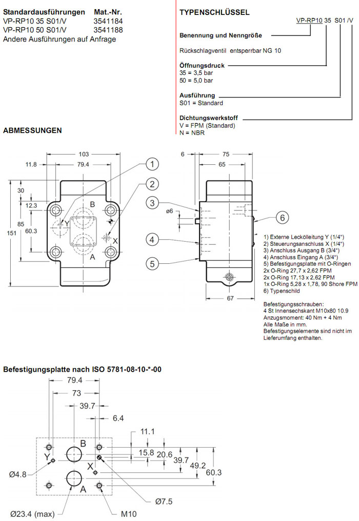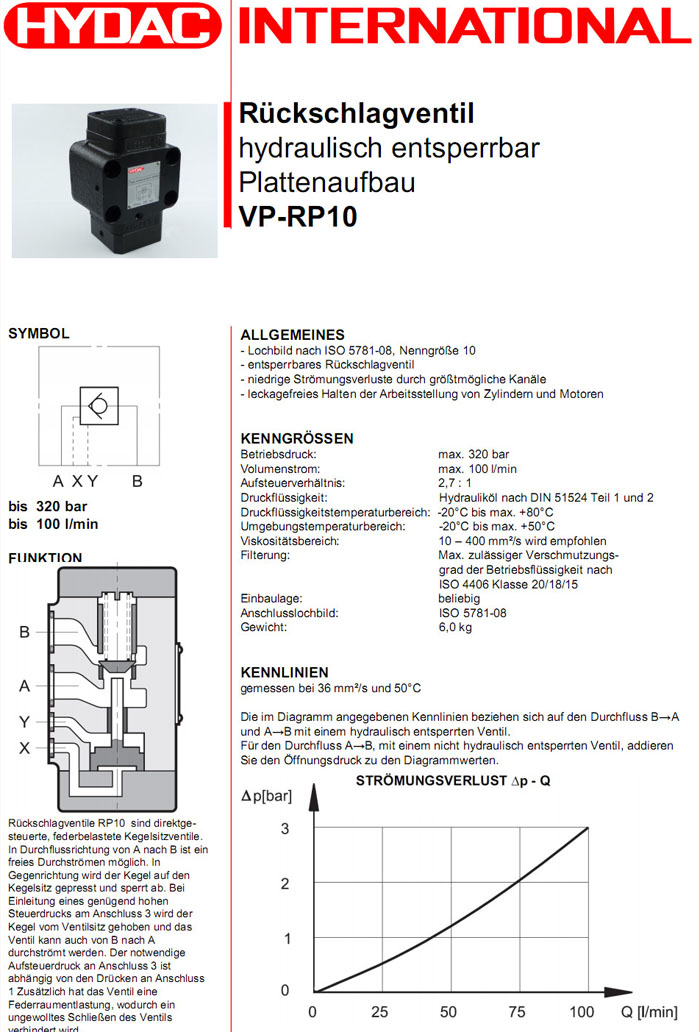 VP-RP10 35 S01/V,VP-RP10 50 S01/V,HYDAC止回阀