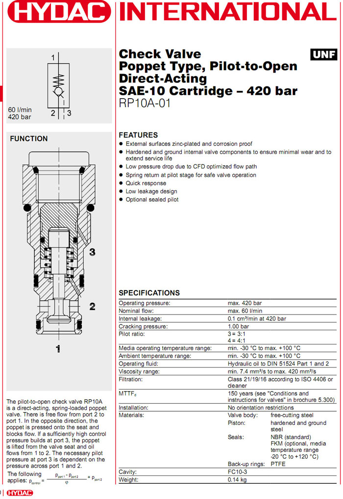 RP10A-01-C-N-15-3,RP10A-01-C-N-15-4,RP10A-01-C-NS-15-3,RP10A-01-C-NS-15-4,HYDAC止回阀