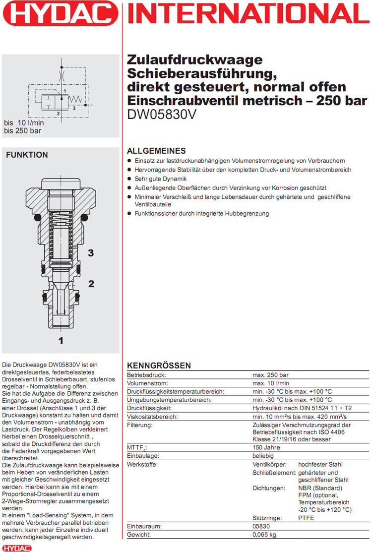 DW05830V-21-C-N-05,DW05830V-21-C-N-10,HYDAC压力补偿阀