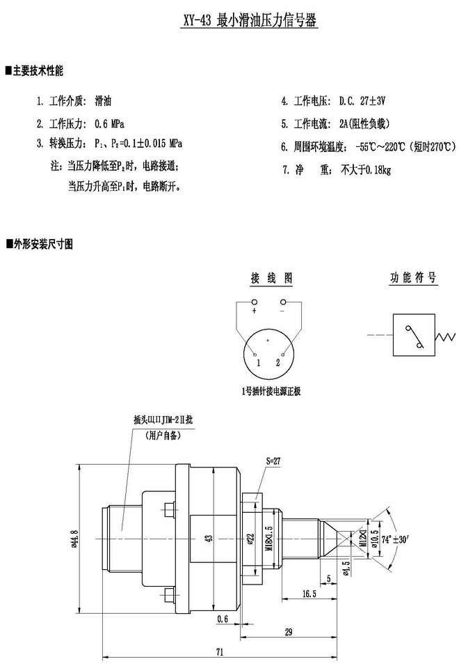 XY-43,最小滑油压力信号器