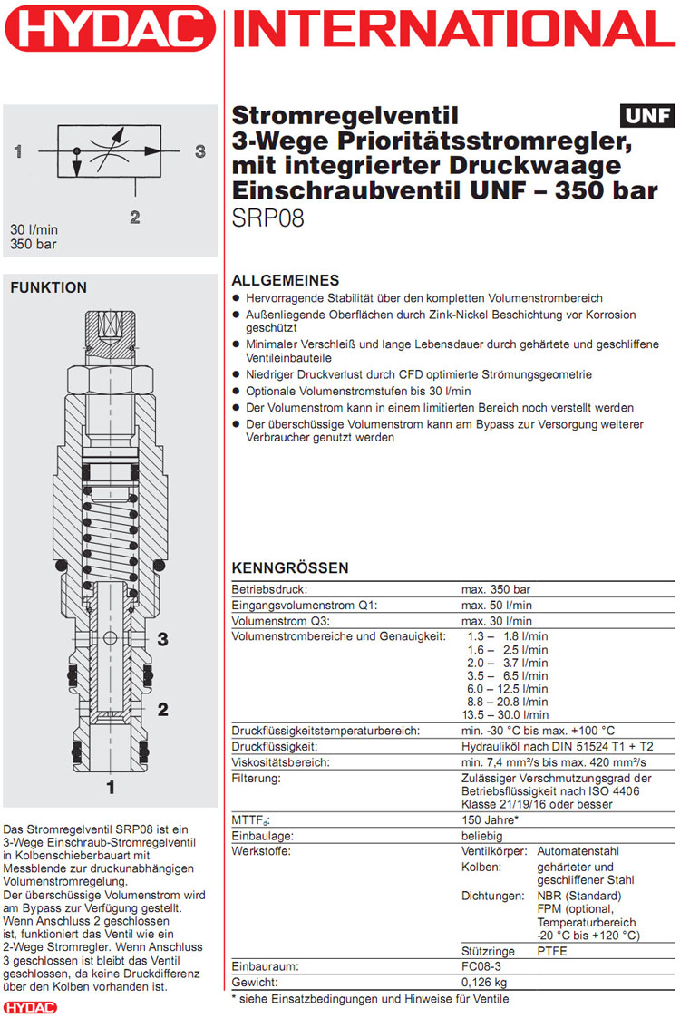 SRP08-01-C-N-0.5V,SRP08-01-C-N-0.9V,SRP08-01-C-N-3.0V,SRP08-01-C-N-5.5V,HYDAC流量控制阀