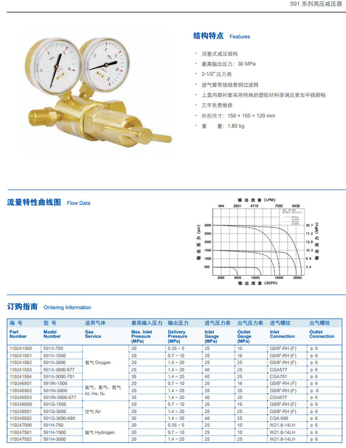 591X-750,591IN-1500,591Q-1500,591H-750,591X-1500,591X-3000,591X-3000-577,高压减压器