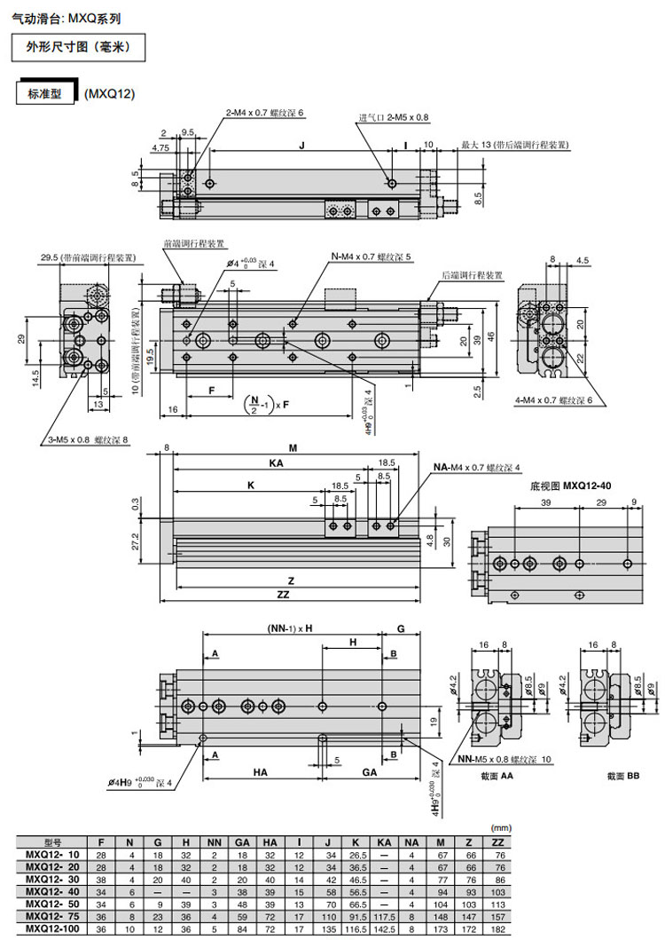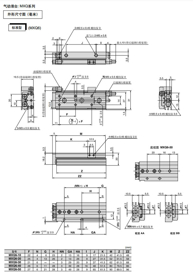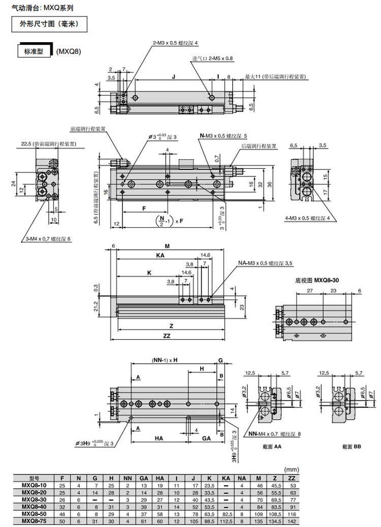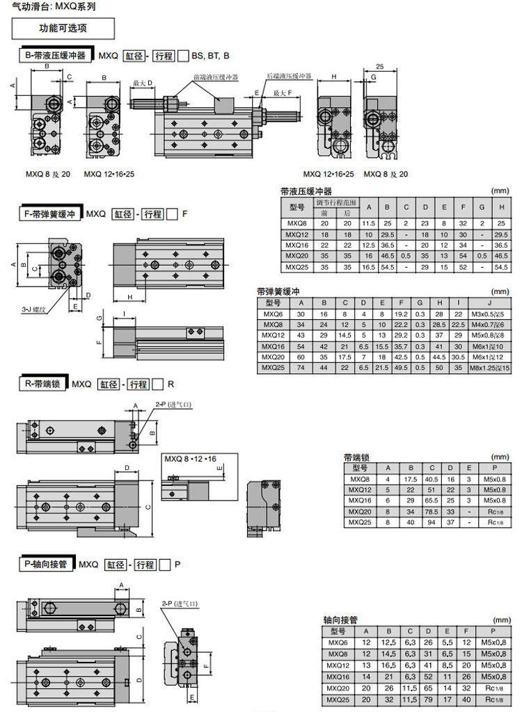 MXQ6-10,MXQ8-10,MXQ12-10,MXQ16-10,MXQ20-10,MXQ25-10,MXQ6-20,SMC气动滑台气缸
