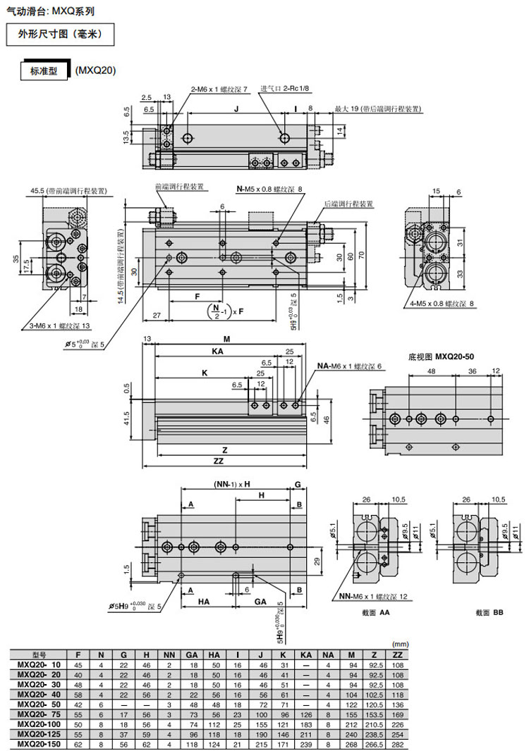 MXQ20-20,MXQ20-30,MXQ20-40,MXQ20-50,MXQ20-75,MXQ20-100,MXQ20-125,MXQ20-150,