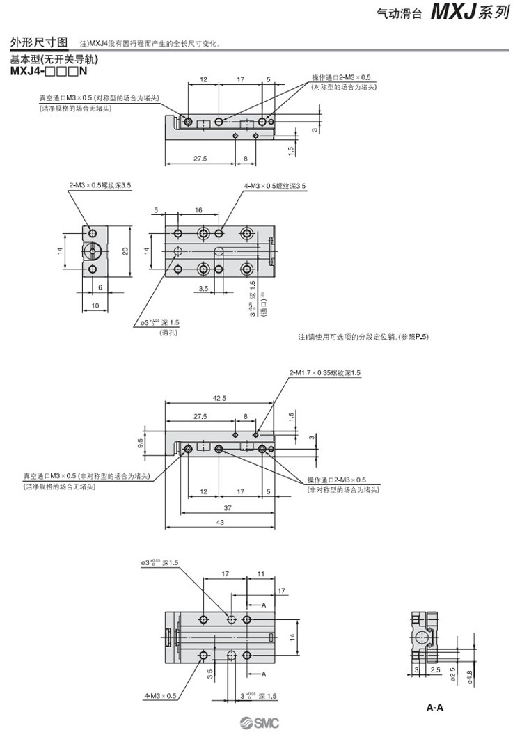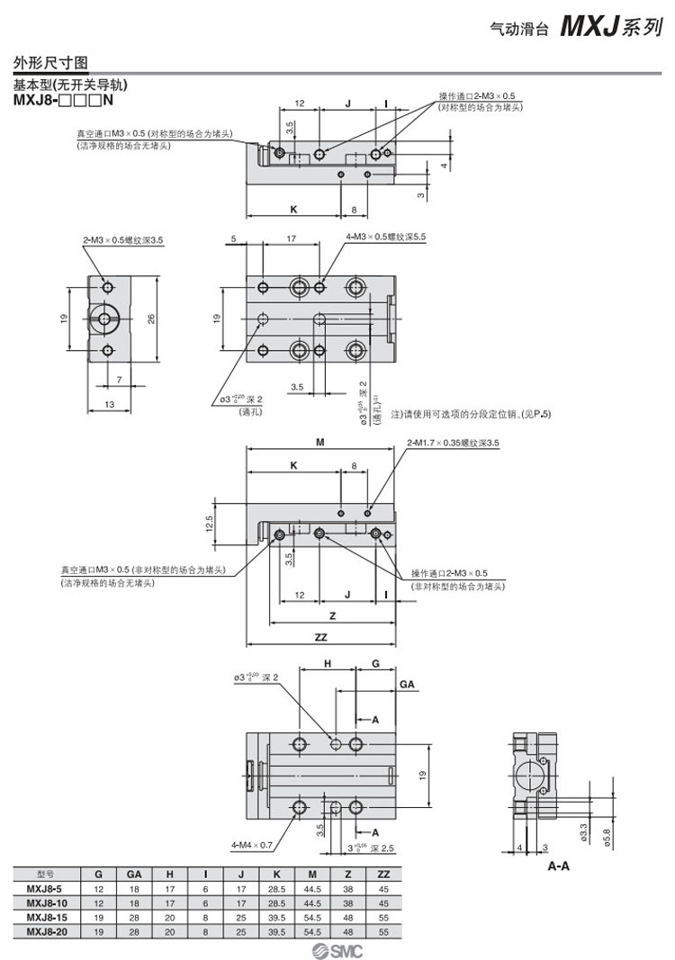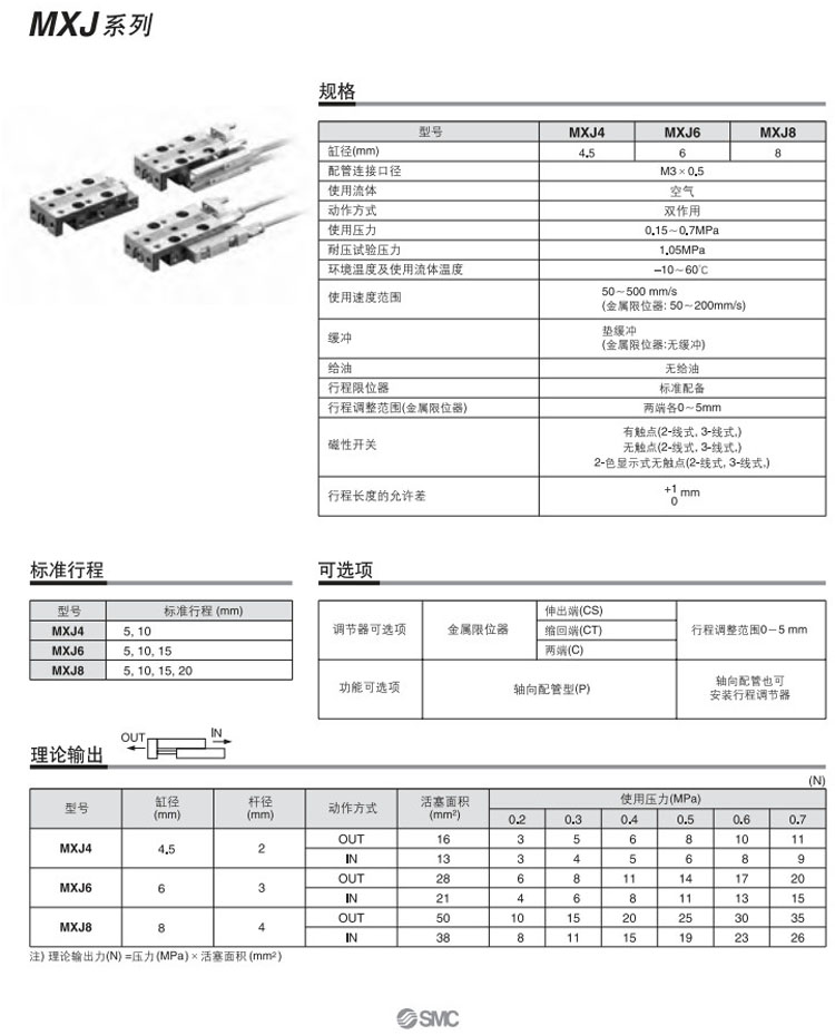 MXJ4-5,MXJ4-10,MXJ6-5,MXJ6-10,MXJ6-15,MXJ8-5,MXJ8-10,MXJ8-15,MXJ8-20,SMC气动滑台气缸