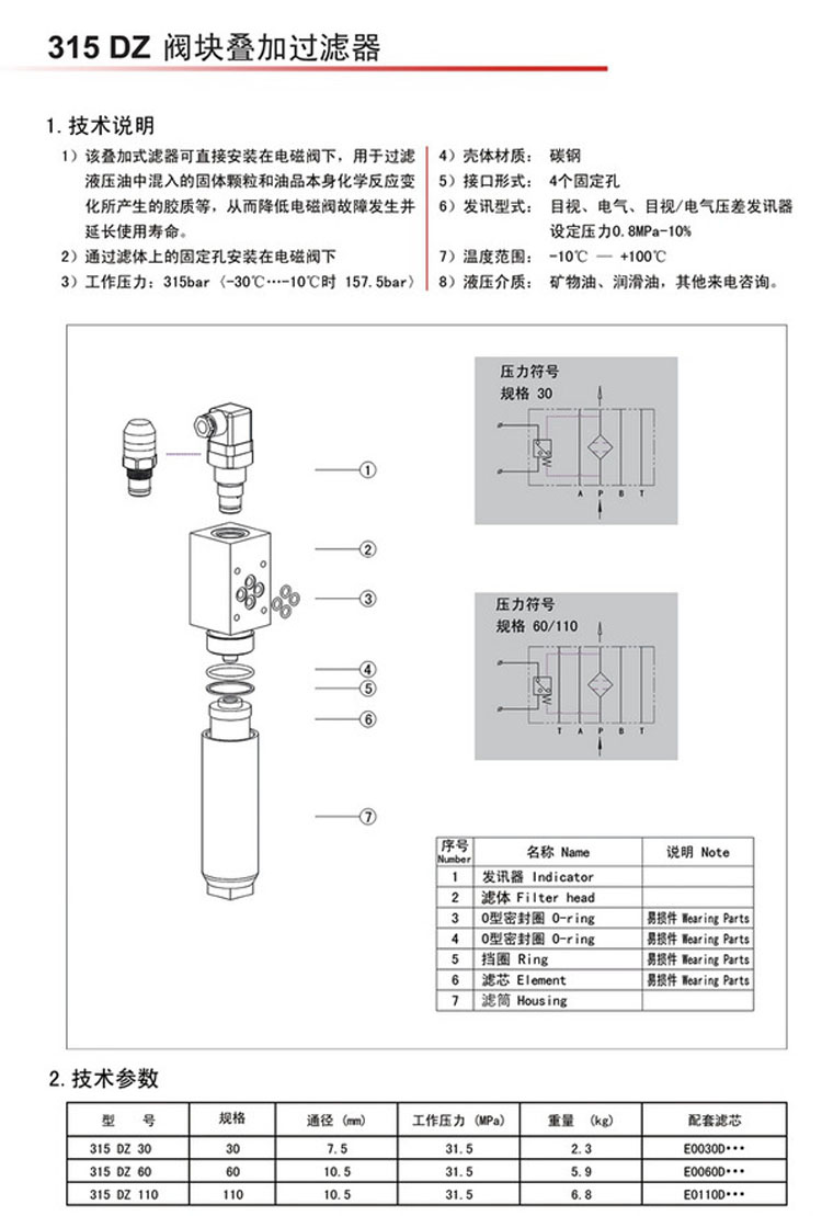 315DZ30BKH3,315DZ60CKH3,315DZ110CKH3,315DZ30BKH5,315DZ60CKH10,315DZ110CKH10,阀块叠加过滤器