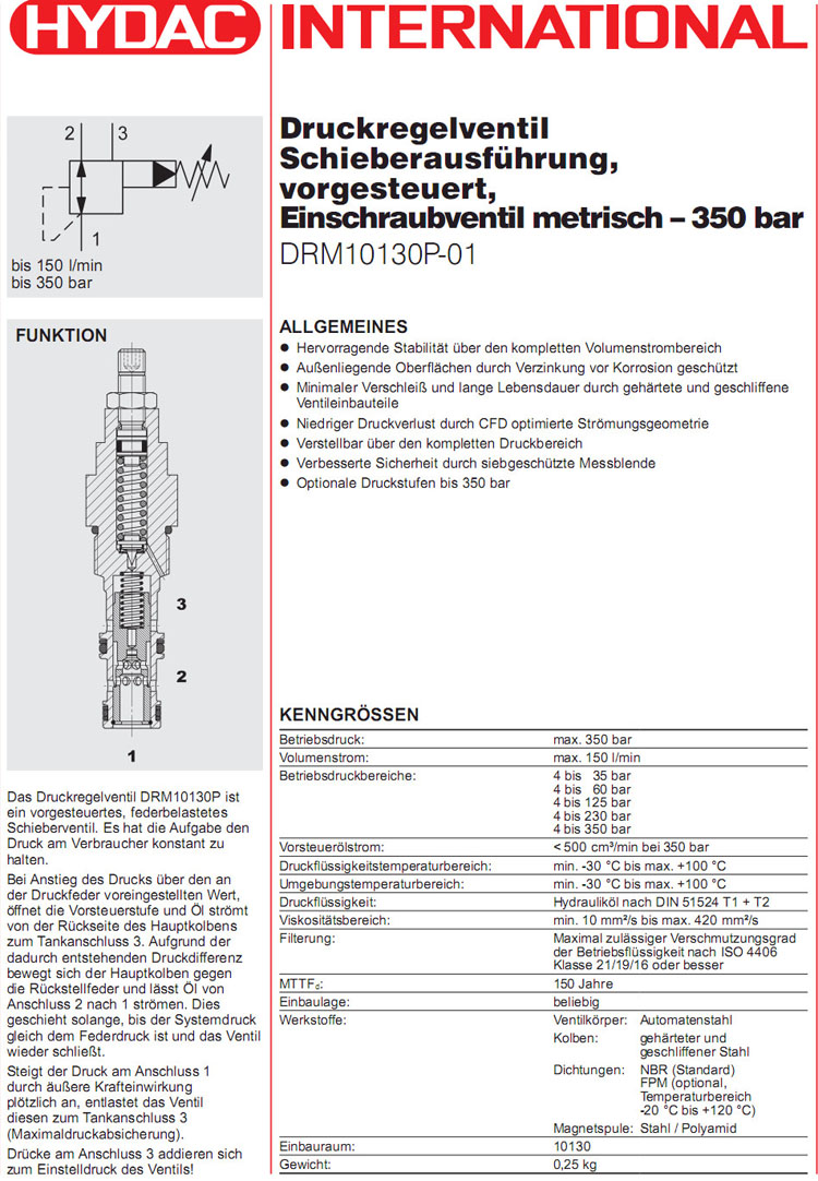 DRM10130P-01-C-N-060V,DRM10130P-01-C-N-230V,DRM10130P-01-C-N-350V,HYDAC先导式减压阀