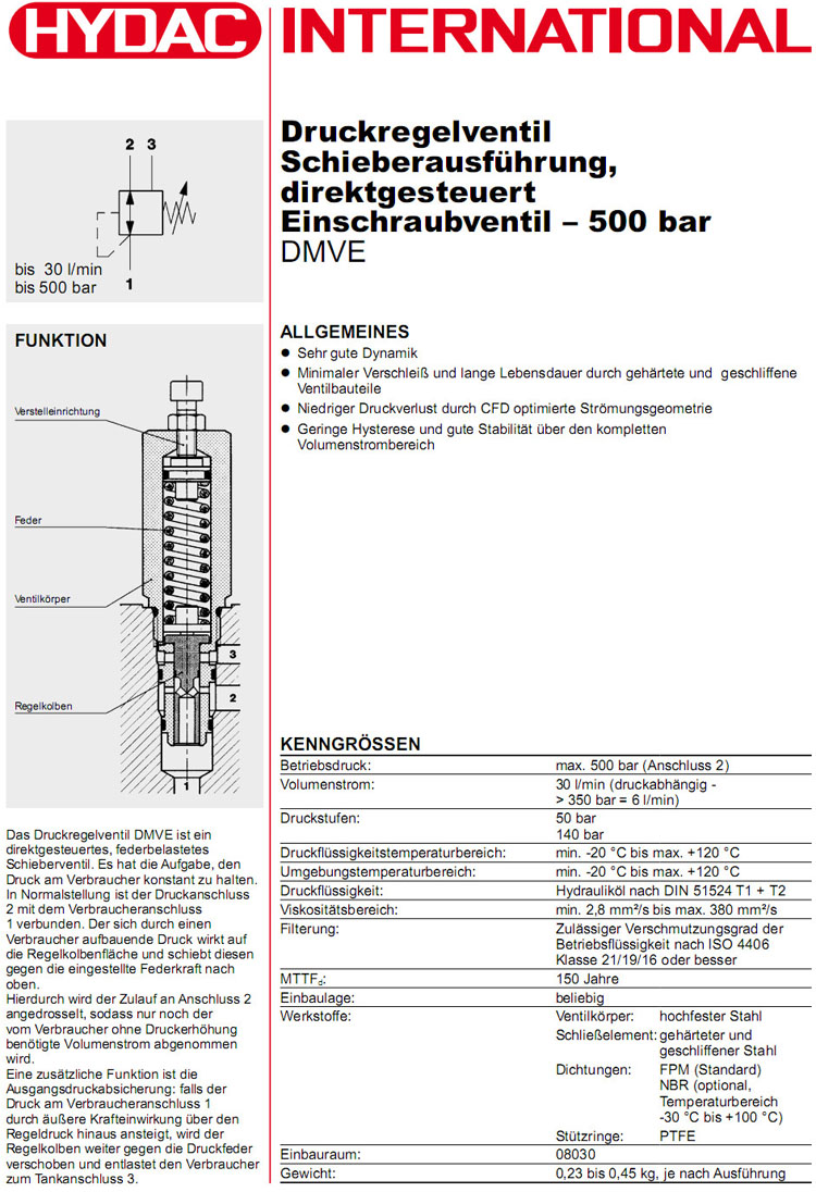 DMVE-G1/2-01X-50V,DMVE-G1/2-01X-140V,HYDAC直动式减压阀
