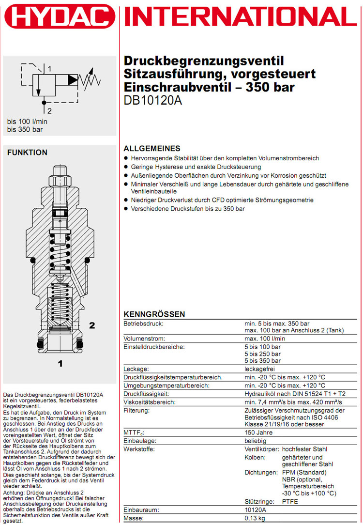 DB10120A-02X-100V,DB10120A-02X-250V,DB10120A-02X-350V,HYDAC压力溢流阀