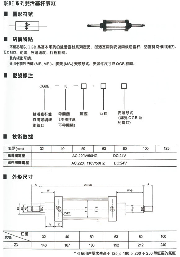 QGBE-K-32,QGBE-K-40,QGBE-K-50,QGBE-K-63,QGBE-K-80,双活塞杆气缸