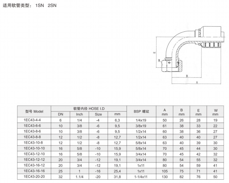 1EC43-4-4,1EC43-6-6,1EC43-8-6,1EC43-8-8,1EC43-10-8,1EC43-10-10,1EC43-12-10,90度弯接头