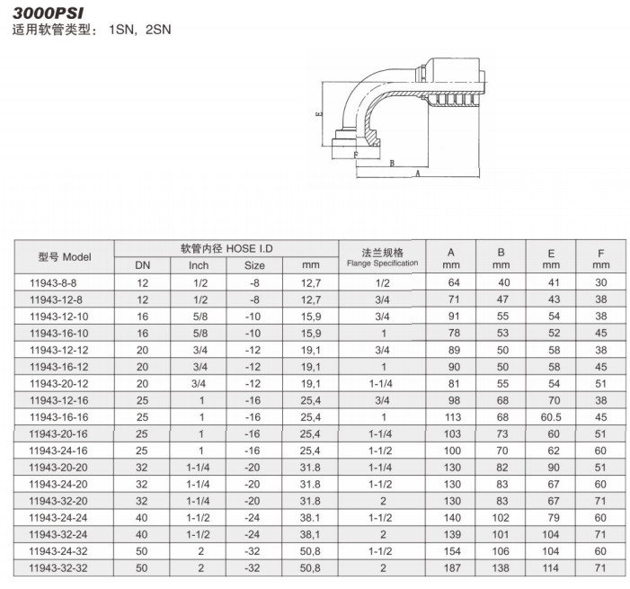 11943-8-8,11943-12-8,11943-12-10,11943-16-10,11943-12-12,11943-16-12,90度法兰接头