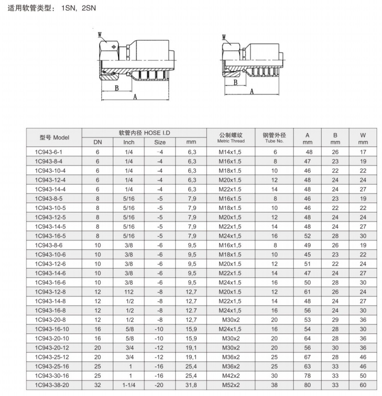 1C943-6-1,1C943-8-4,1C943-10-4,1C943-12-4,1C943-14-4,1C943-8-5,扣压式软管接头