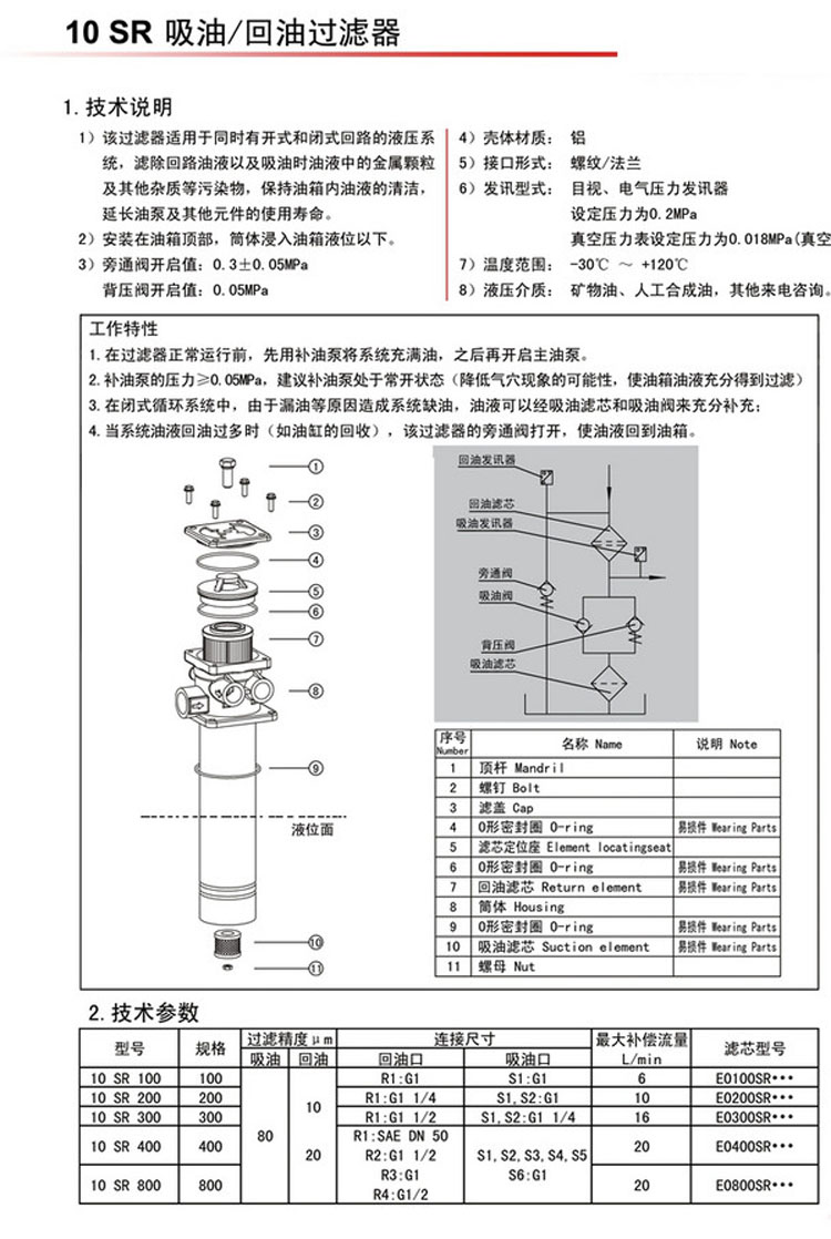 10SR100KN10,10SR100KN20,10SR200KN10,10SR200KN20,10SR300KN20,10SR400KN10,10SR800KN20,回油过滤器