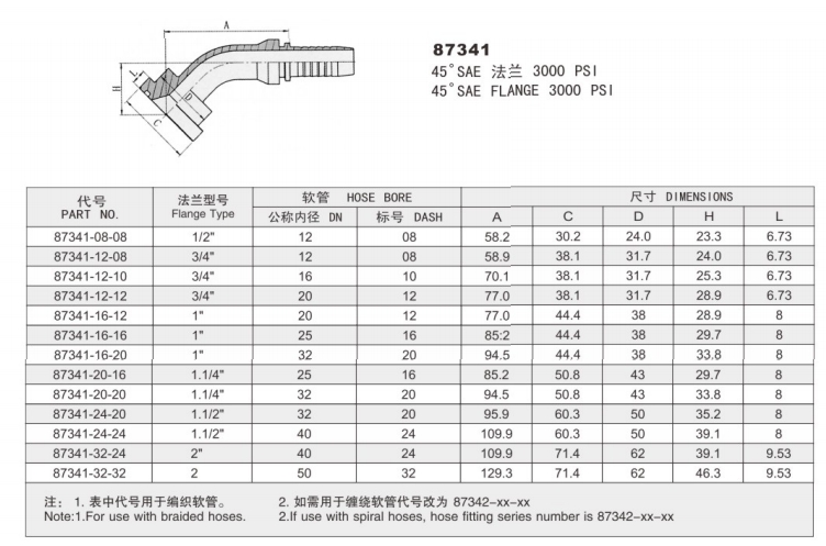 87341-08-08,87341-12-08,87341-12-10,87341-12-12,87341-2-16,87341-6-12,扣压式软管接头