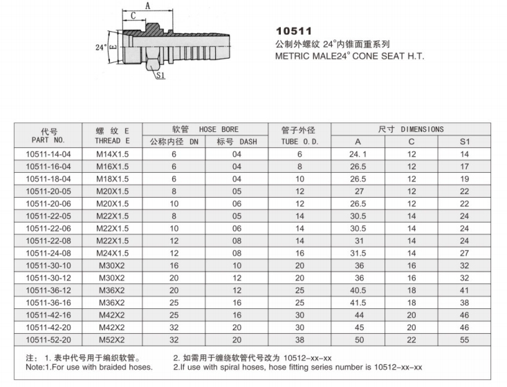 10511-14-04,10511-16-04,10511-18-04,10511-20-05,10511-20-06,10511-22-05,扣压式软管接头