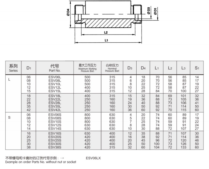 ESV06L,ESV08L,ESV10L,ESV12L,ESV15L,ESV16S,ESV20S,ESV25S,ESV30S,ESV38S,隔板式焊接接头