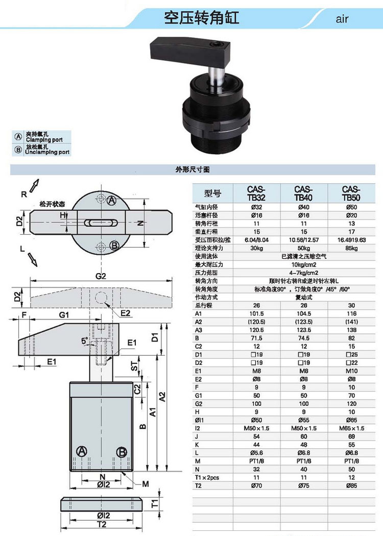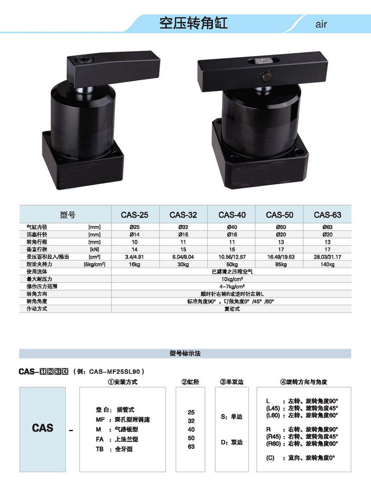 CAS,CAS-MF,CAS-M,CAS-FA,CAS-TB,CAS-25,CAS-M40,CAS-TB63,CAS-FA32,空压转角缸