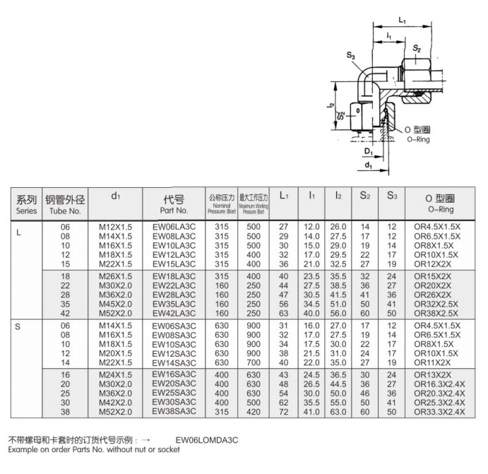 EW06LA3C,EW08LA3C,EW10LA3C,EW10SA3C,EW12SA3C,EW14SA3C,直角组合接头