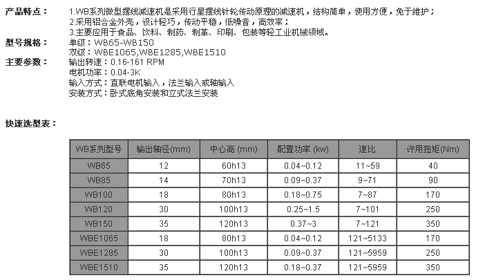 WBE65,WBE85,WBE100,WBE120,WBE150,WBE1065,WBE1285,WBE1510,WB65-W-F63/B5,WB85-W-F63/B5,