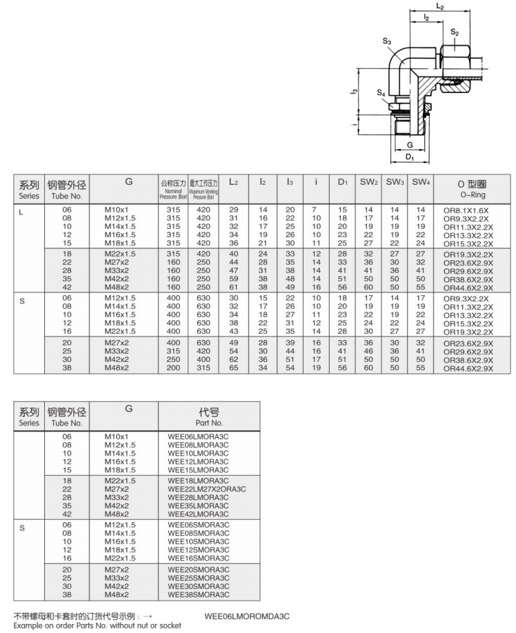 WEE06LMORA3C,WEE08LMORA3C,WEE10LMORA3C,WEE10SMORA3C,WEE12SMORA3C,直通可调向接头